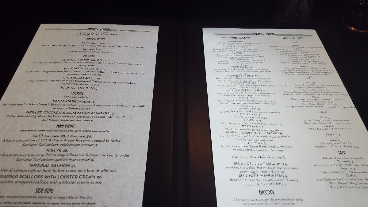 Introducing the Menu at The Blue Note Bistro And Lounge